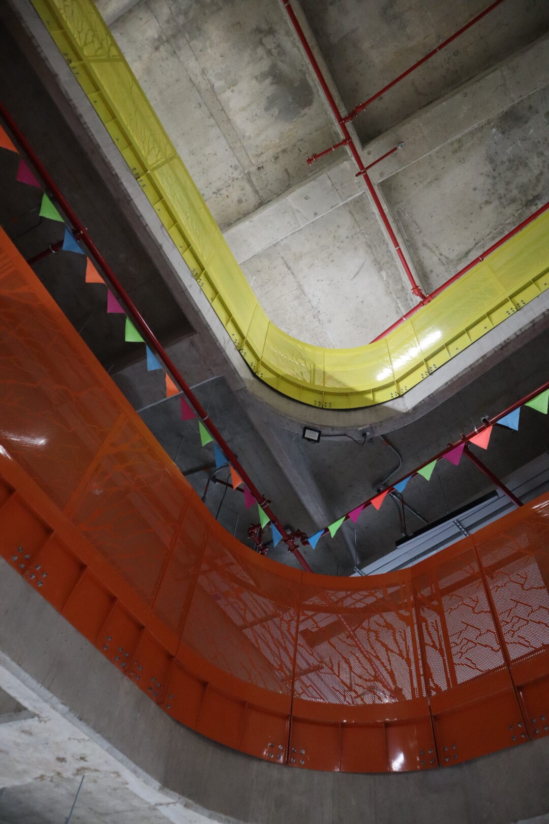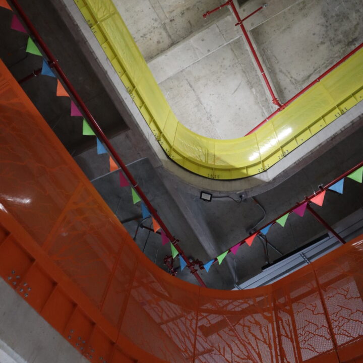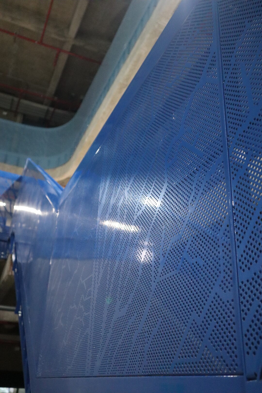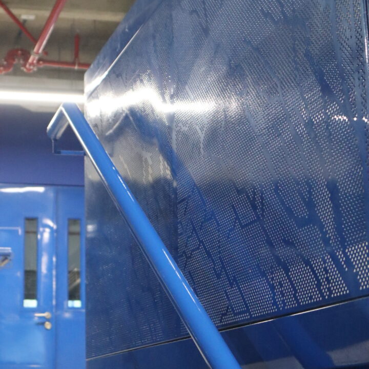 Nuestra intervención incluyó la creación de fachadas planas y curvas entre losas, empleando lámina de acero galvanizado. Este desafío requirió una alta precisión para lograr radios cerrados sin comprometer la estética ni la resistencia estructural.